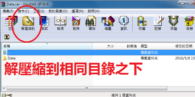 2.打開壓縮檔按"解壓縮到"
