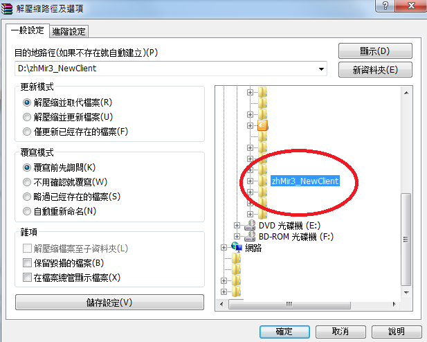 3.路徑就設你主程式放的位置 會自動解壓縮到相同目錄之下 按確定就完成了